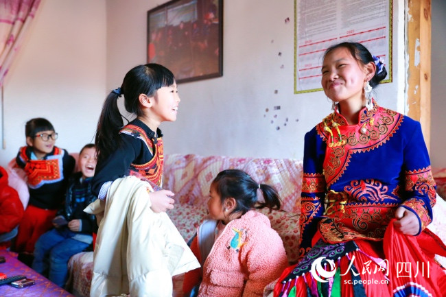 又是一年除夕,雪后晴朗的天空下,四川省涼山州昭覺縣州縣兩級(jí)文藝演出隊(duì)組織的慰問演出在三河村進(jìn)行。村民們被熱鬧喜慶的氛圍感染,演出完畢后仍久久不愿離去。