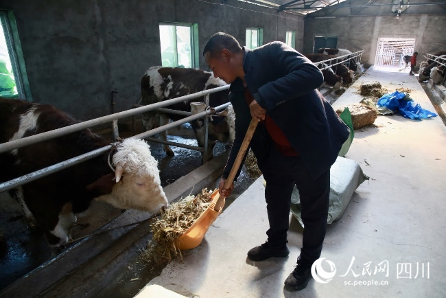 正在養(yǎng)牛場(chǎng)忙碌的洛古有格。人民網(wǎng) 朱虹攝