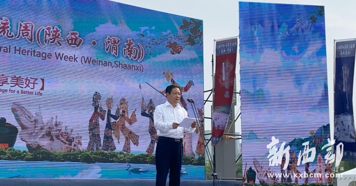 在聯(lián)合國(guó)教科文組織駐華代表、兄弟省市代表致辭及柬埔寨國(guó)公省代表線上致辭后,陜西省副省長(zhǎng)葉牛平邀請(qǐng)各方來(lái)賓共同啟動(dòng)首屆國(guó)際非遺交流周(陜西·渭南)。