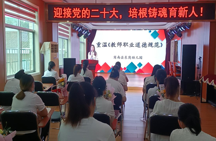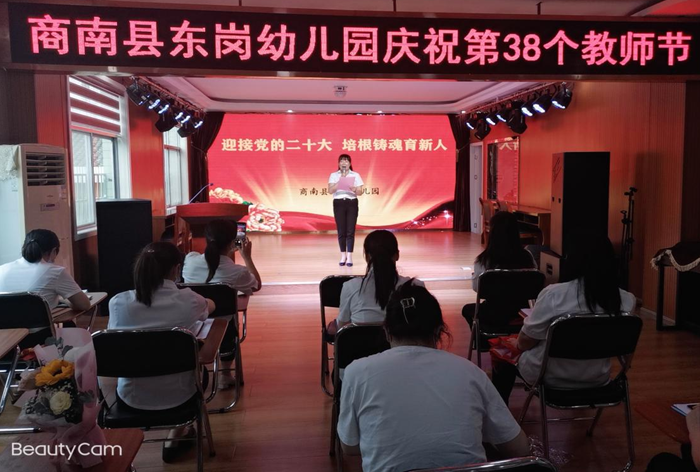 金秋時(shí)節(jié),桂樹悄然吐蕊,佳節(jié)如期而至,在這個(gè)滿載收獲和喜悅的初秋時(shí)節(jié)里,第38個(gè)教師節(jié)踏著輕盈的腳步向我們翩翩走來。9月8日下午,商南縣東崗幼兒園全體教職工歡聚一堂,開展“迎接黨的二十大,培根鑄魂育新人”為主題的教師節(jié)活動(dòng)。