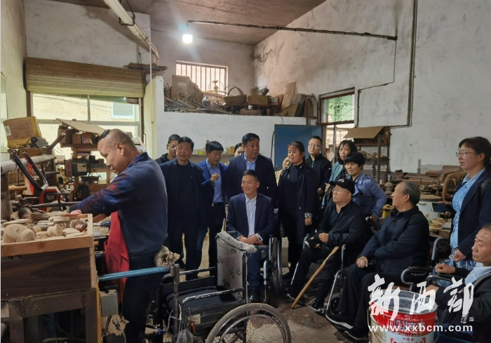 隨后,采風(fēng)團(tuán)一行又冒雨來到棣花鎮(zhèn)賈塬村重度殘疾人賈滿濤家中實(shí)地參訪,賈滿濤演示了他起居出行和工藝品加工等日常生活常態(tài)。采風(fēng)團(tuán)對(duì)縣殘聯(lián)為賈滿濤量身定制的“起居杠桿滑輪床+移乘出室+如廁洗澡+升降出行+技能增收”綜合型輔具助殘脫貧案例表示高度認(rèn)可。該案例解決了賈滿濤能上下床、站得起、走得出的難題,在他基本實(shí)現(xiàn)了生活自理后,縣殘聯(lián)又通過“陽(yáng)光增收”項(xiàng)目給他進(jìn)行了資金扶持,幫他購(gòu)回木工小車床,協(xié)調(diào)棣花古鎮(zhèn)景區(qū)在宋金橋下黃金地段為他免費(fèi)提供了一個(gè)攤位,使他的木質(zhì)工藝品生意日益興隆,收入穩(wěn)定。