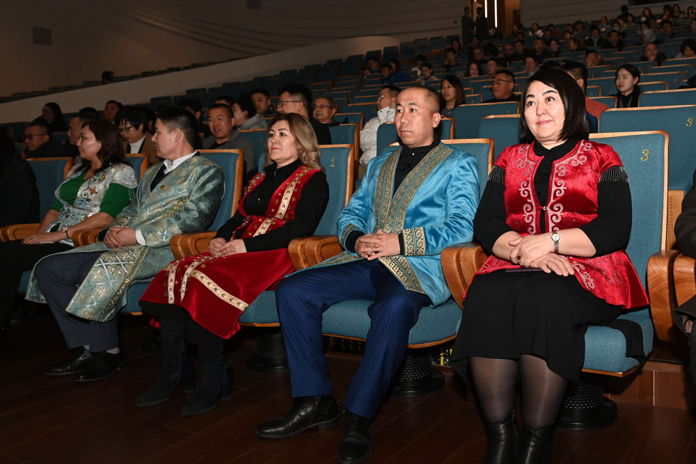 ?? 2月29日,來自西安愛菊集團(tuán)哈薩克斯坦工廠的員工代表在位于西安浐灞國際港的長安樂·一帶一路文化藝術(shù)中心觀看演出《無界·長安》。新華社記者 李一博 攝