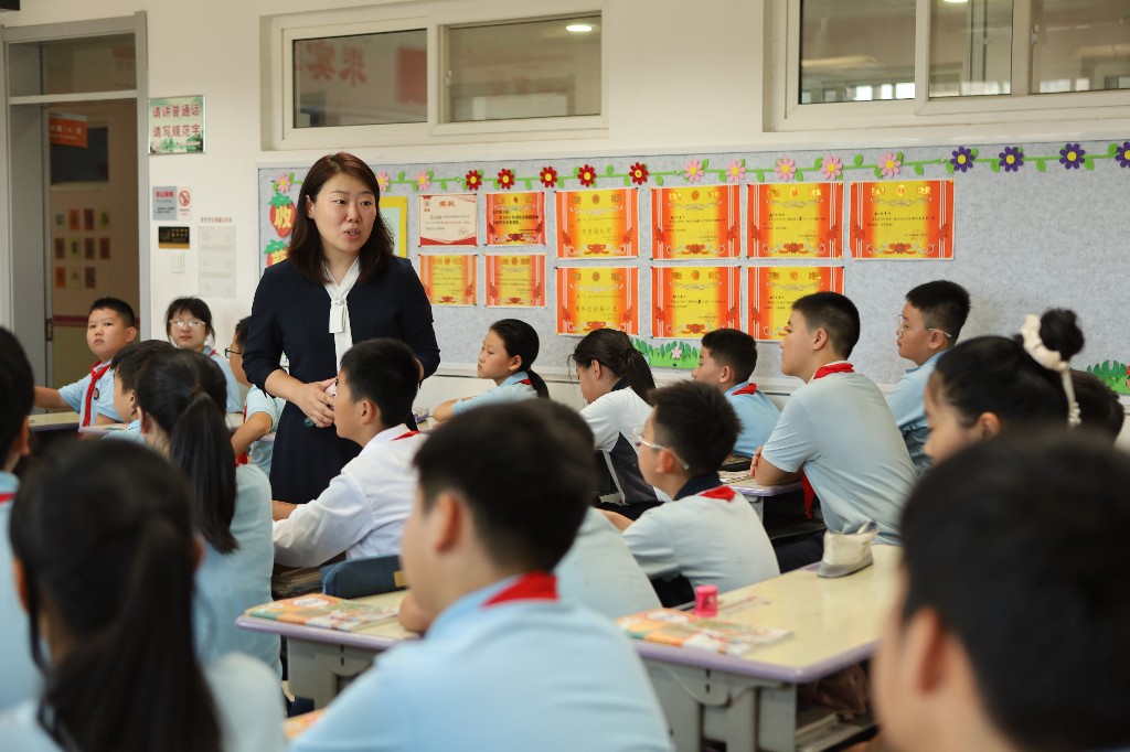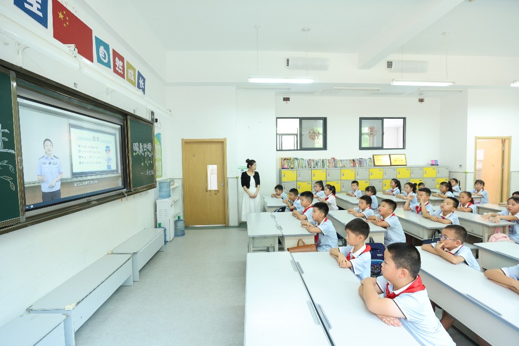 西安市碑林區(qū)建國路小學(xué)教導(dǎo)處主任張維在給學(xué)生講述如何防詐騙。 張蓉 攝