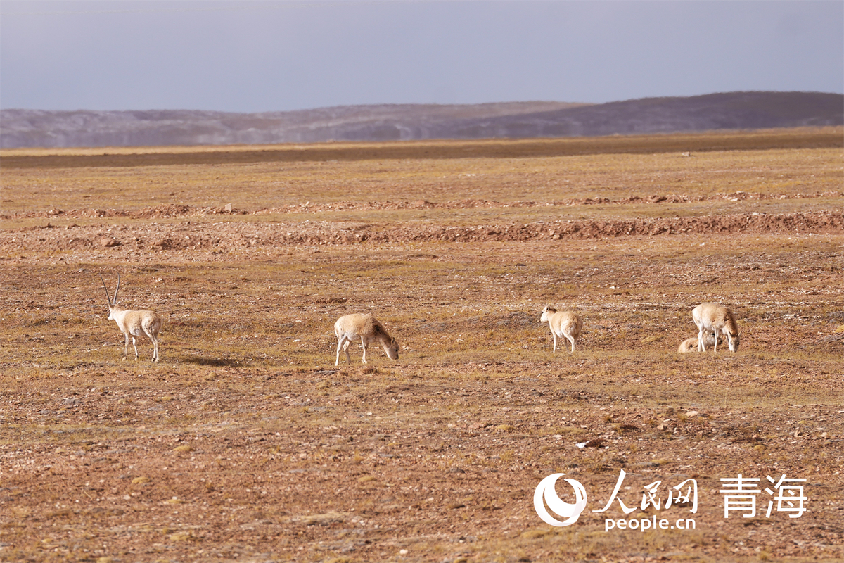 ▲可可西里,藏羚羊在覓食。人民網(wǎng)記者 甘海瓊攝