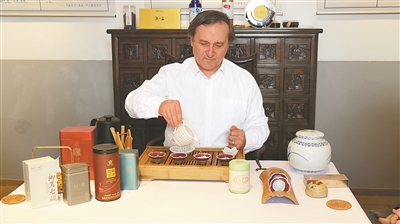品茶已經(jīng)成為許多意大利人的日常生活習(xí)慣。意大利茶業(yè)與花草茶協(xié)會主席馬可·貝托納十分喜愛中國茶,并收藏有正山小種、普洱茶等多種中國名茶。圖為馬可·貝托納在展示茶藝。本報意大利分社菲利普·布蒂塔攝
