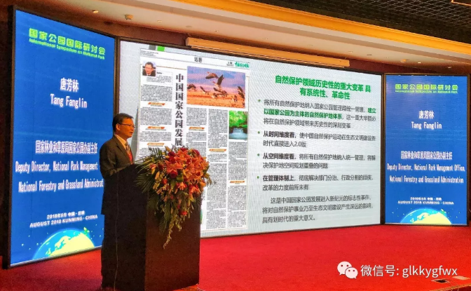 2018年8月14日-15日,由國家林業(yè)和草原局(國家公園管理局)主辦的國家公園國際研討會在昆明召開。國家林業(yè)和草原局李春良副局長出席會議并發(fā)表重要講話、云南省人民政府陳舜副省長出席會議并致辭。參加研討會的有來自國家財政部、自然資源部、國家林業(yè)和草原局、云南省人民政府,各省市區(qū)林業(yè)主管部門,各國家公園體制試點區(qū)的代表;會議還邀請了以中國工程院原副院長沈國舫院士,美國國家公園管理局前局長、加州伯克利分校公園人類及生物多樣性研究所執(zhí)行主任JonathanB. Jarvis教授為代表的來自聯(lián)合國環(huán)境署、世界自然基金會、自然資源保護學會等國際組織以及來自美國、巴西、非洲等的有關專家,以及部分國內(nèi)國家公園領域的學者約200人與會。開幕式由國家林業(yè)和草原局總經(jīng)濟師、國家公園管理辦主任張鴻文同志主持。