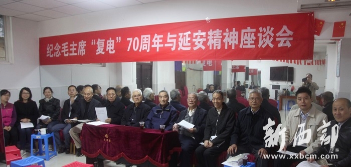 2019年10月16日,陜西省社會(huì)科學(xué)院舉辦了《紀(jì)念毛主席“復(fù)電”70周年與延安精神座談會(huì)》,社科院離退中心專家咨詢服務(wù)團(tuán)專家、機(jī)關(guān)黨委專職副書記孫昉同志、科研處處長(zhǎng)王建康研究員及青年科研人員等15人參加了座談會(huì)。離退中心主任牛涇民同志主持了會(huì)議。
