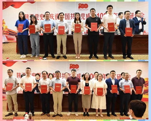 中共陜西省委黨史研究室科研規(guī)劃處處長、陜西省中共黨史學(xué)會副會長耿琪宣讀了《關(guān)于表彰陜西黨史界慶祝中國共產(chǎn)黨成立100周年獲獎(jiǎng)?wù)撐牡臎Q定》,主席臺領(lǐng)導(dǎo)向陜西黨史界慶祝中國共產(chǎn)黨成立100周年理論征文活動獲獎(jiǎng)?wù)哳C發(fā)了證書。