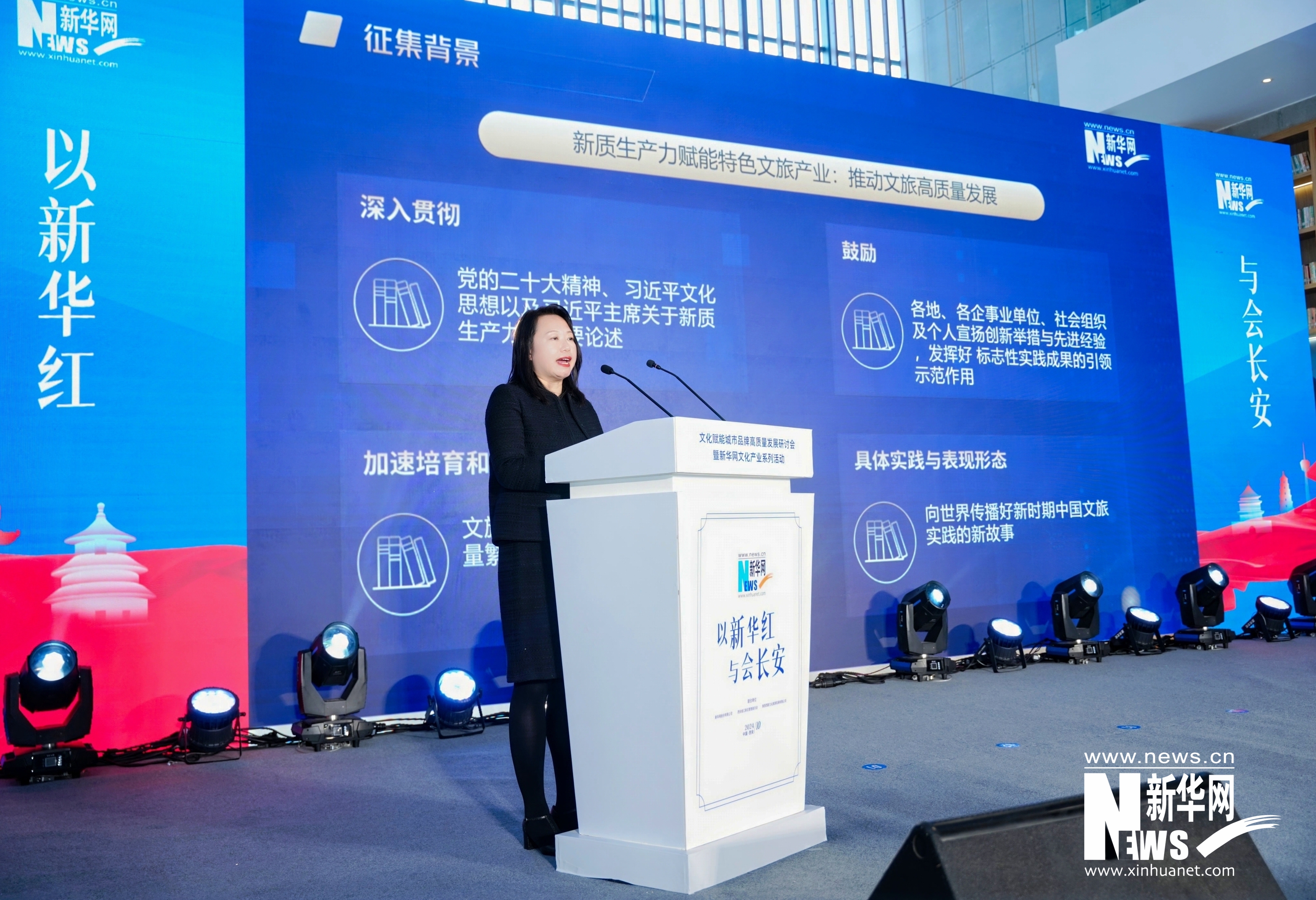 ▲中國(guó)傳媒大學(xué)文化產(chǎn)業(yè)管理學(xué)院副院長(zhǎng)劉江紅發(fā)布《2024“新質(zhì)生產(chǎn)力賦能特色文旅優(yōu)秀實(shí)踐案例”征集》。