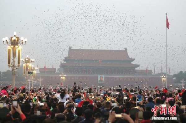 資料圖:數(shù)萬民眾在北京天安門廣場觀看國慶升旗儀式。中新社記者 盛佳鵬 攝