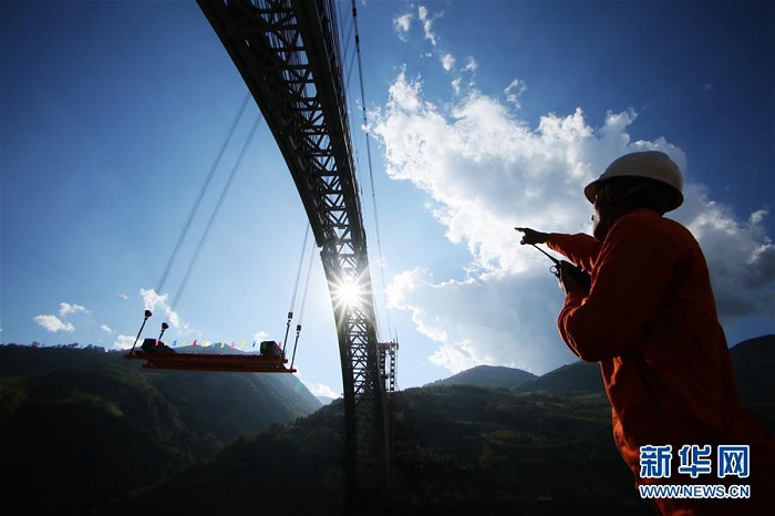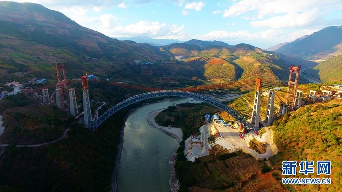 人民網(wǎng)昆明12月10日電 12月10日10時(shí)58分,隨著最后兩片分別重20噸的鋼桿件緩緩上吊、平移和精準(zhǔn)對(duì)接到位,大瑞鐵路重點(diǎn)控制性工程——怒江四線特大橋按期實(shí)現(xiàn)鋼桁拱合龍,標(biāo)志著大瑞鐵路重難點(diǎn)工程建設(shè)取得重大突破,這是目前世界上跨度最大的鐵路拱橋,為全線早日建成通車創(chuàng)造了條件。