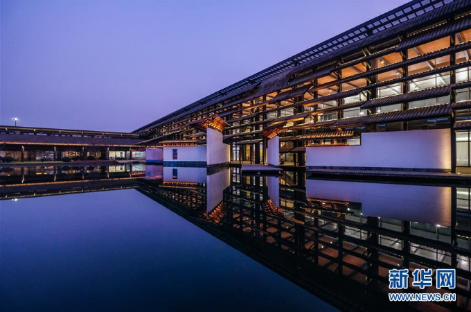 這是10月19日拍攝的烏鎮(zhèn)互聯(lián)網(wǎng)國際會(huì)展中心夜景。 新華社記者 徐昱 攝
