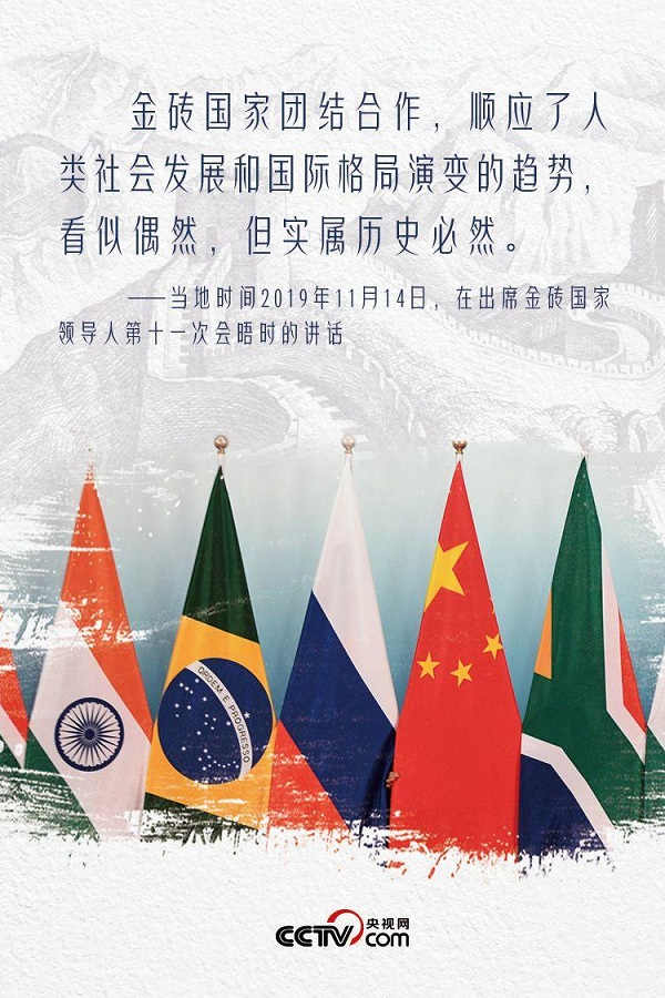 “金磚國(guó)家團(tuán)結(jié)合作,順應(yīng)了人類社會(huì)發(fā)展和國(guó)際格局演變的趨勢(shì),看似偶然,但實(shí)屬歷史必然?!睔v史可鑒,未來(lái)可期。