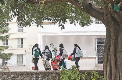 23日,云南大理州漾濞縣全縣學(xué)校陸續(xù)錯(cuò)時(shí)錯(cuò)峰開學(xué)。圖為漾濞一中初中部學(xué)生回校。常世偉攝