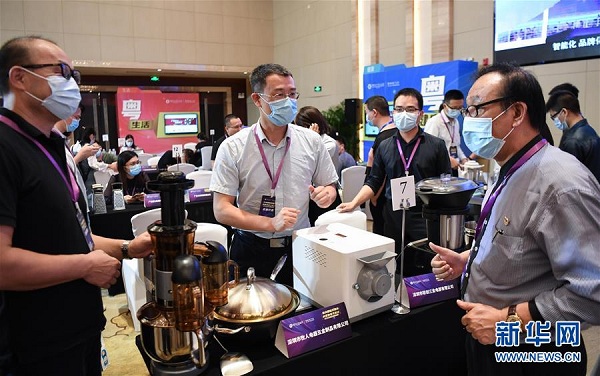 在第128屆網(wǎng)上廣交會(huì)的線下雙循環(huán)貿(mào)易促進(jìn)活動(dòng)上,企業(yè)代表和采購代表洽談業(yè)務(wù)(10月16日攝)。新華社記者 鄧華 攝