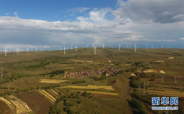 這是河北省張家口市張北縣大河鄉(xiāng)一處風(fēng)電場(9月15日攝,無人機(jī)照片)。新華社記者 楊世堯 攝