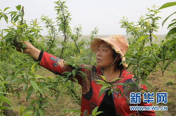 基地工人楊明英為李樹抹芽(攝于3月31日)。新華網(wǎng) 蔡連素?cái)z
