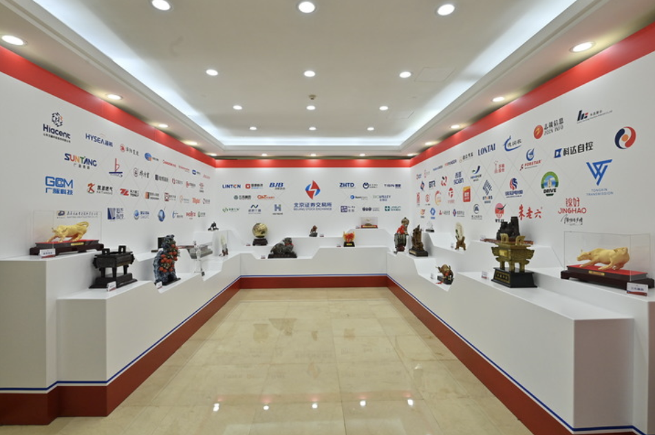 北京證券交易所首批上市的81家企業(yè)標(biāo)識(shí)展示墻。新華社記者 李鑫 攝