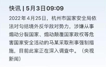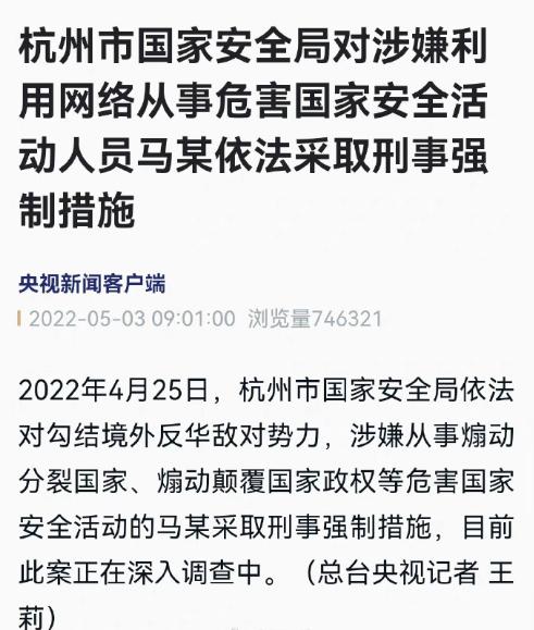 今天,突發(fā)一重大新聞事件:一人因涉嫌利用網(wǎng)絡(luò)危害國(guó)家安全活動(dòng),被杭州市國(guó)安安全局依法采取刑事強(qiáng)制措施。