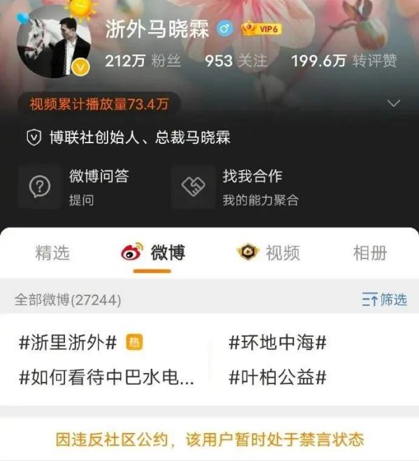 其中微博賬號(hào)“浙外馬曉霖”就因?yàn)楸唤裕狭瞬聹y(cè)榜了。