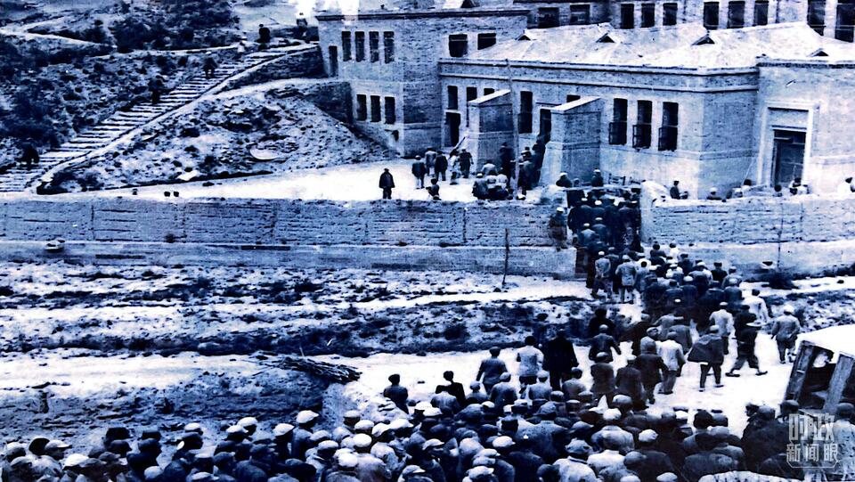 △中共七大代表進(jìn)入會場的老照片。(總臺央視記者盧心雨提供)