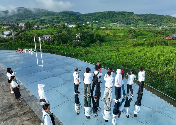 立秋時節(jié),明星村的桑樹在雨水的滋潤下顯得更加翠綠油嫩,連片的桑海散發(fā)著陣陣清香。游客接待中心、旅游商品超市、研學(xué)賓館、精品民宿、天空之鏡、空中漂流、山地摩托、醉美桑海農(nóng)旅體驗區(qū)……曾經(jīng)不起眼的明星村變成了風(fēng)景優(yōu)美、體驗項目多樣、配套設(shè)施完善的生態(tài)度假村。