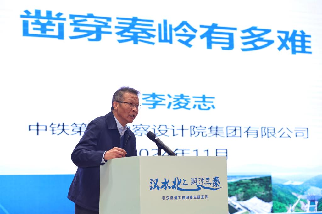 ▲中鐵第一勘察設(shè)計(jì)院集團(tuán)有限公司引漢濟(jì)渭指揮部指揮長(zhǎng)李凌志進(jìn)行主題分享