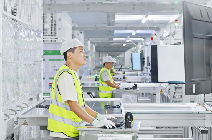 工人在位于浙江省樂清市的正泰集團8GW高效光伏組件生產基地工作(資料照片)。 新華社發(fā)