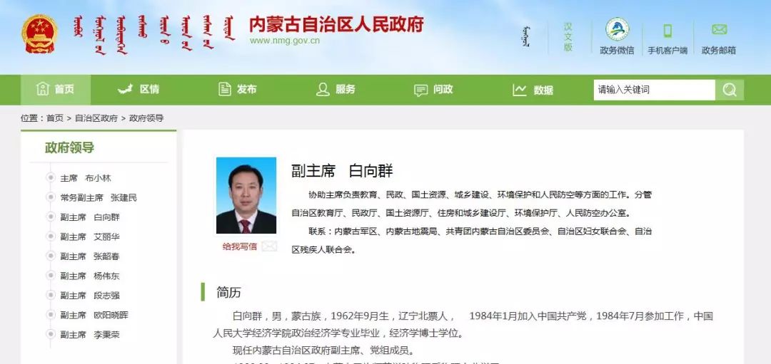 白向群,內(nèi)蒙古自治區(qū)政府副主席。