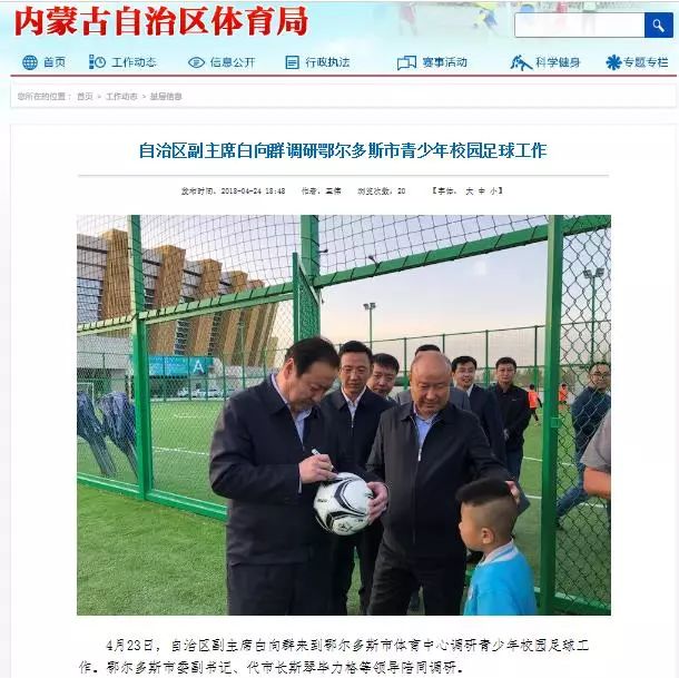在內(nèi)蒙古自治區(qū)體育局的官網(wǎng)上,昨天18點48分,還剛剛上線了“自治區(qū)副主席白向群調(diào)研鄂爾多斯市青少年校園足球工作”的動態(tài)新聞。
