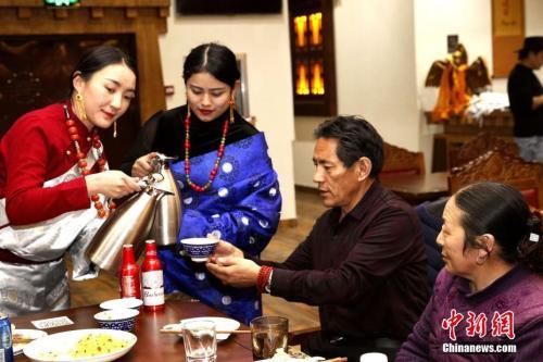 圖為食客在城市藏餐吧喝奶茶。中新社記者 張?zhí)砀?攝