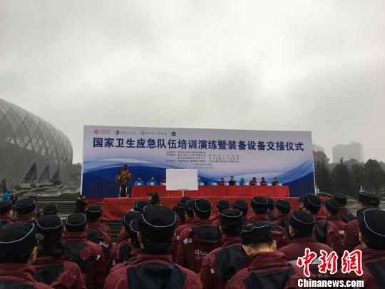 國家衛(wèi)生應急隊伍培訓演練暨裝備設備交接儀式現(xiàn)場。 劉鵬 攝