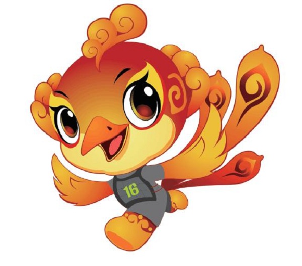 吉祥物《陽陽》以秦文化圖騰“玄鳥”為設計原型,取名“陽陽”,簡潔明了的體現(xiàn)出陜西省第十六屆運動會的舉辦地——咸陽。圖形中融合“如意、水紋”元素,身穿玄色16字樣秦甲,形成活潑時尚的卡通形象,凸顯秦文化,展現(xiàn)咸陽人文精神,詮釋“全民省運、激情省運、和諧省運”的理念。雙翅展開的奔跑動態(tài),既展現(xiàn)咸陽人熱情奔放歡迎各地運動健兒和嘉賓的胸懷,又彰顯出“團結(jié)奮進、拼搏向上”的體育精神。整體形象卡通、擬人,生動、活潑、歡快,易于應用傳播。