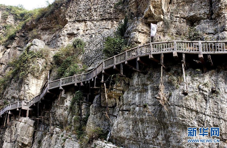 這是四川省廣元市朝天區(qū)明月峽棧道(2002年10月25日攝)。由天梯云棧構(gòu)成、穿越秦巴大山,連接川陜的古道,始建于先秦,其交通作用一直延續(xù)至20世紀(jì)初。新華社記者 陶明 攝