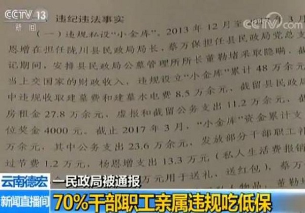 原標(biāo)題:云南德宏一民政局被通報 70%干部職工親屬違規(guī)吃低保