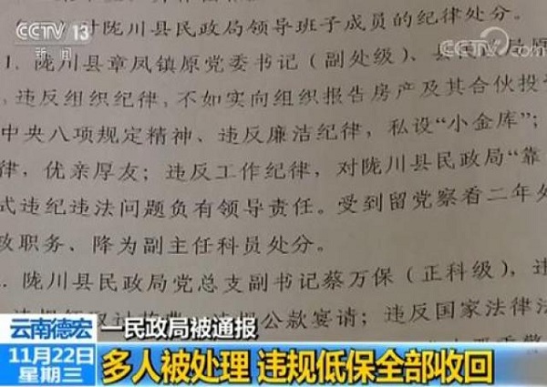 多人被處理 違規(guī)低保全部收回