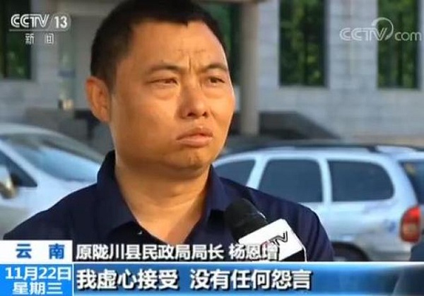 原隴川縣民政局局長 楊恩增:我虛心接受,沒有任何怨言,堅決服從組織對我的處理。