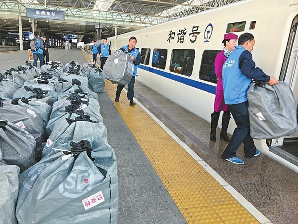 2016年,鐵路部門首次推出“雙11”電商黃金周服務,利用高鐵富余運能運送快件。