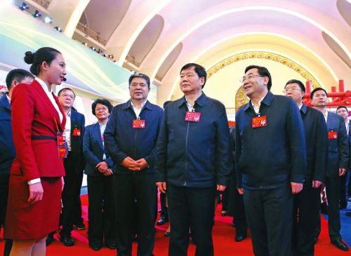 10月19日晚,出席黨的十九大的陜西代表參觀了“砥礪奮進(jìn)的五年”大型成就展。代表團(tuán)團(tuán)長(zhǎng)、省委書記婁勤儉,代表團(tuán)副團(tuán)長(zhǎng)、省長(zhǎng)胡和平,十九大代表、省政協(xié)主席韓勇,代表團(tuán)秘書長(zhǎng)、省委副書記毛萬春,省委常委賀榮、張廣智、徐新榮、錢引安等代表一起參觀。