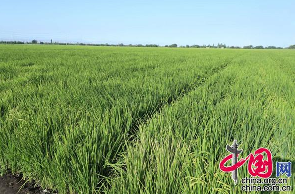 新疆天業(yè)(集團(tuán))有限公司膜下滴灌水稻示范基地(攝影:李培剛)