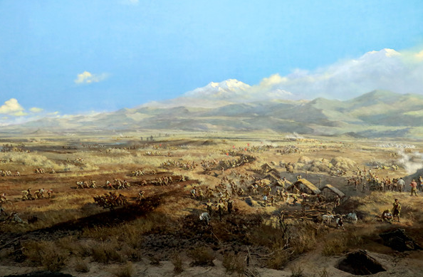 巨幅半景畫(huà)《屯墾戍邊》(部分)展現(xiàn)當(dāng)年屯墾場(chǎng)景