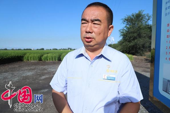 新疆天業(yè)(集團(tuán))有限公司農(nóng)研所所長(zhǎng)王永強(qiáng)介紹情況(攝影:李培剛)