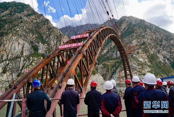 9月28日拍攝的川藏鐵路拉林段重點標(biāo)志性工程藏木特大橋。新華社記者普布扎西攝