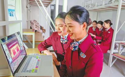 天府新區(qū)航空旅游職業(yè)學(xué)院的學(xué)生們通過電腦和手機(jī)觀看慶祝改革開放40周年大會(huì)盛況。 本報(bào)記者 李向雨 攝