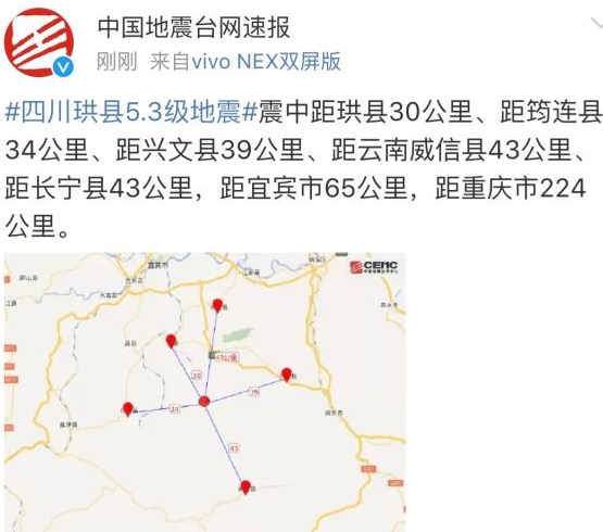 據(jù)@中國地震臺(tái)網(wǎng)消息,中國地震臺(tái)網(wǎng)正式測定:01月03日08時(shí)48分在四川宜賓市珙縣(北緯28.20度,東經(jīng)104.86度)發(fā)生5.3級(jí)地震,震源深度15千米。