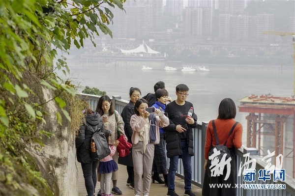 游客在山城第三步道的懸空棧道上游覽(2018年12月2日攝)。 新華社記者 劉潺 攝
