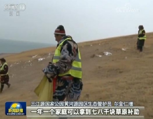 三江源國家公園黃河源園區(qū)生態(tài)管護員 爾金仁增:現(xiàn)在的政策很好,實行生態(tài)草原的管護,一年一個家庭可以拿到七八千塊草原補助,當生態(tài)管護員,個人一年的收入有三萬多塊。