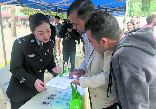在昨日的活動現(xiàn)場,不少外國留學(xué)生也趕來,向民警咨詢在蓉申請創(chuàng)業(yè)簽證、境外高校來蓉申請實習(xí)簽證等問題。