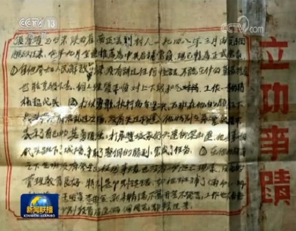 這一張“特等功”報(bào)功書,是1948年發(fā)出的,也是在這一年,張富清加入解放軍西北野戰(zhàn)軍,報(bào)功書中特別提到,在永豐戰(zhàn)役中,張富清所在的六連是突擊連,“他第一個(gè)帶頭跳下了4米高的城墻”。