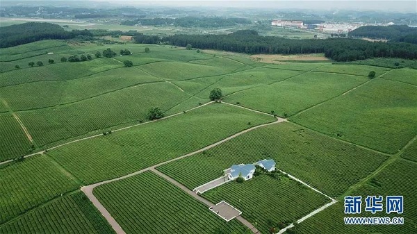 這是5月19日無人機(jī)拍攝的貴州省貴安新區(qū)羊艾茶園景觀。新華社記者 歐東衢 攝